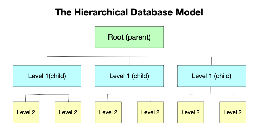 The earliest systems were called the hierarchical and network models. The hierarchical model organised data in a tree-like structure, as shown in fig. 1. IBM developed this model in the 1960s.
